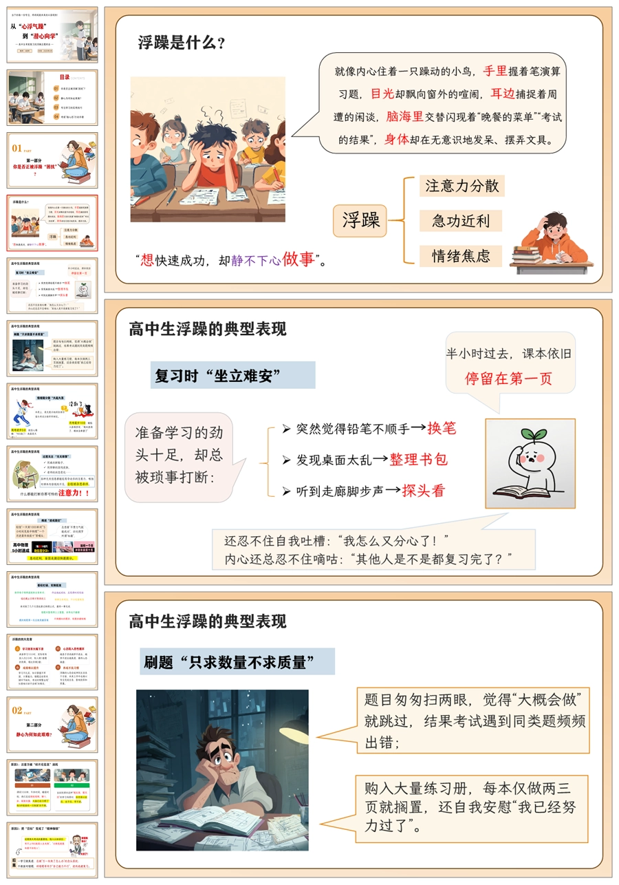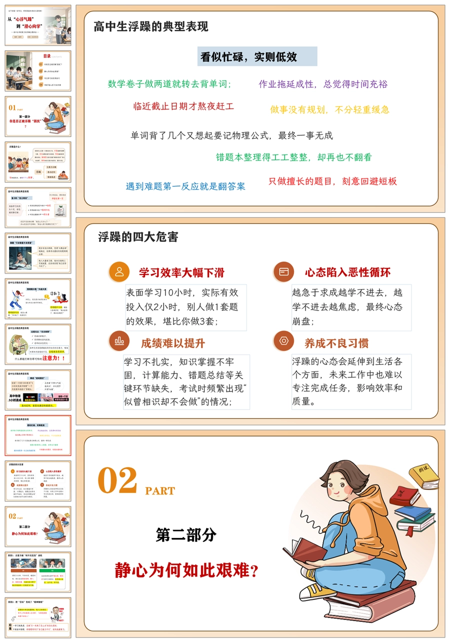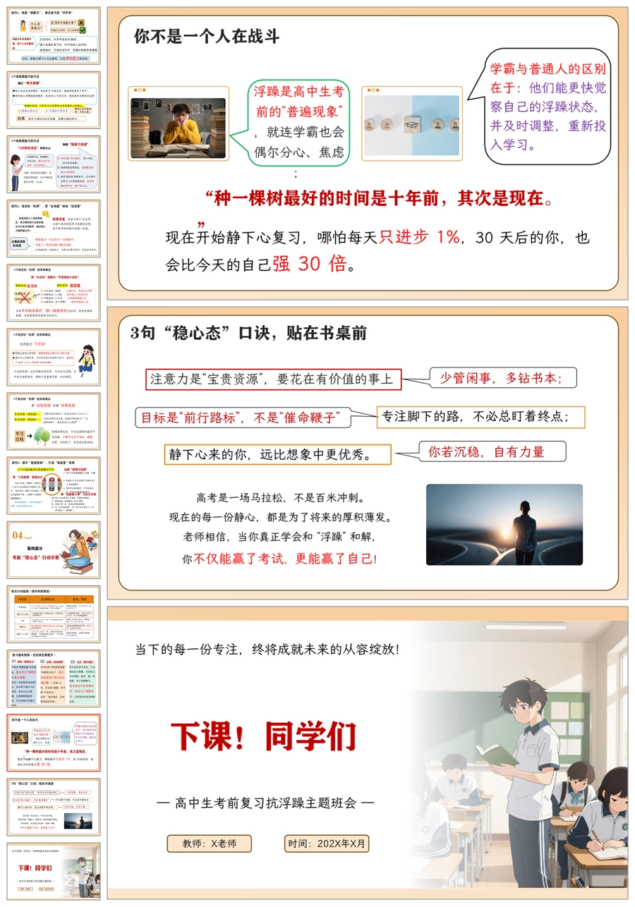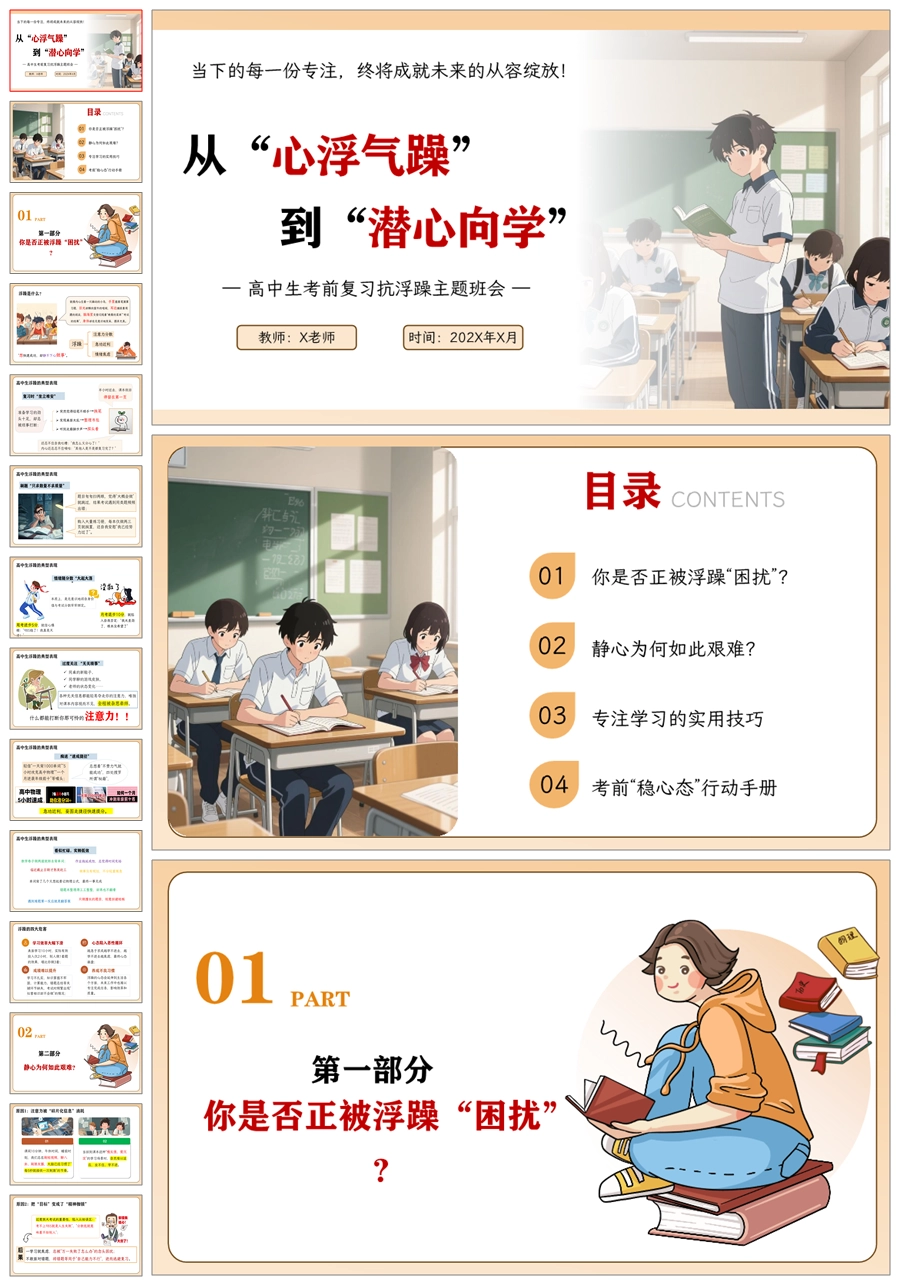 【6085】《从“心浮气躁”到“潜心向学”》高中生考前复习抗浮躁主题班会PPT课件+教案