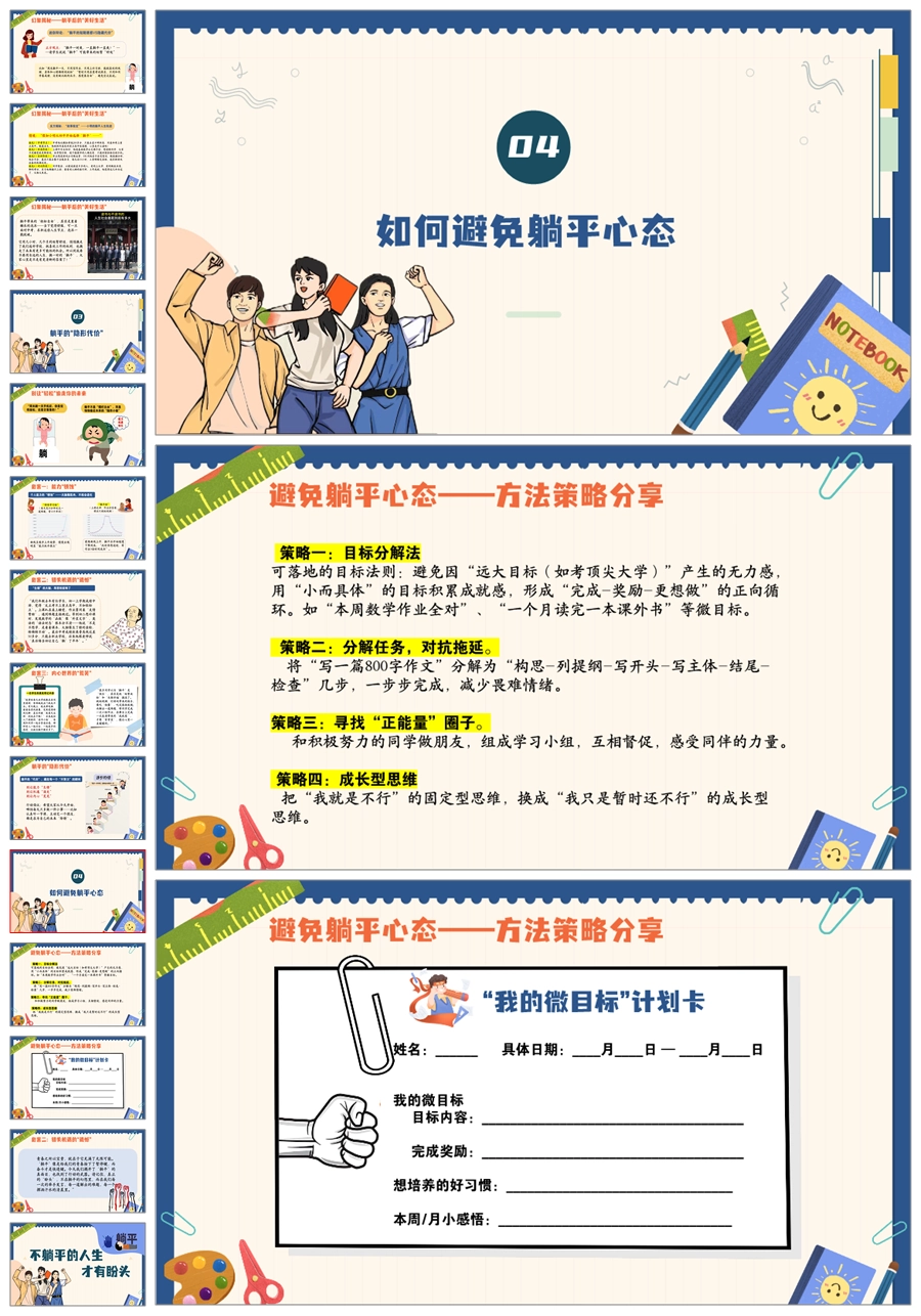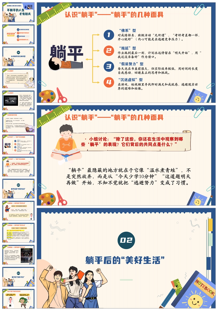 【6087】《不躺平的人生才有盼头》励志教育主题班会PPT课件+教案+逐字稿