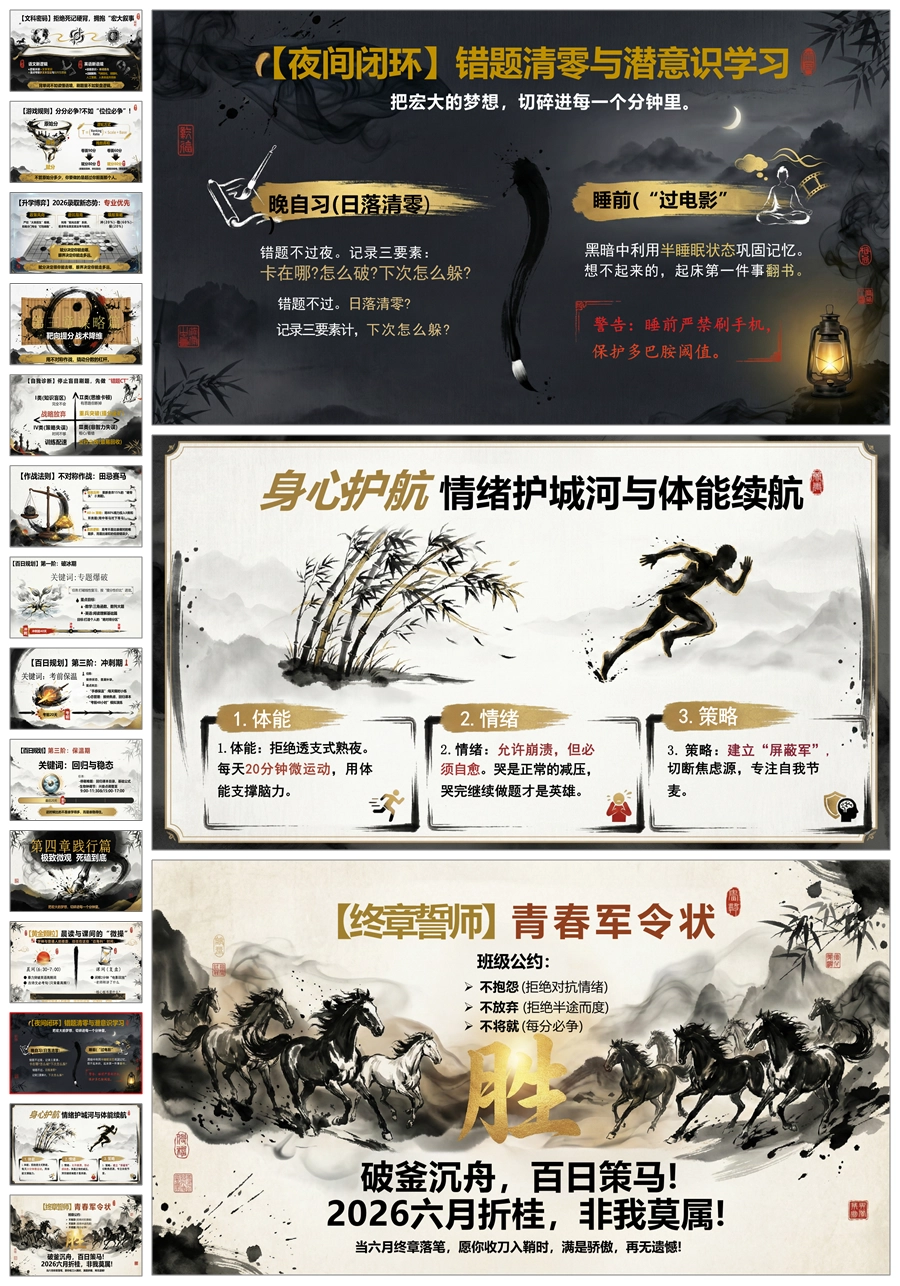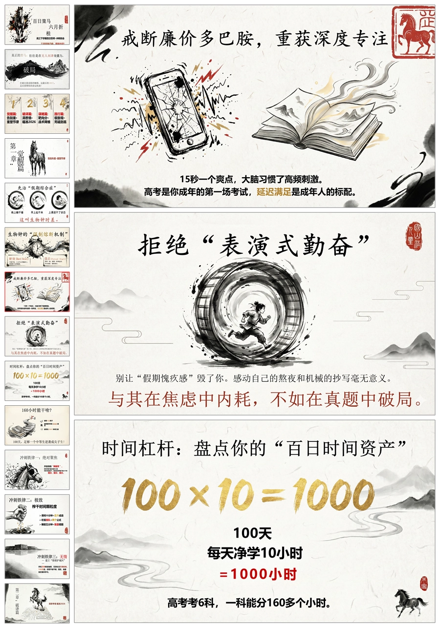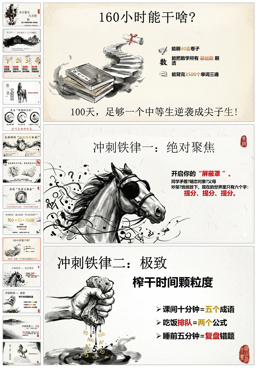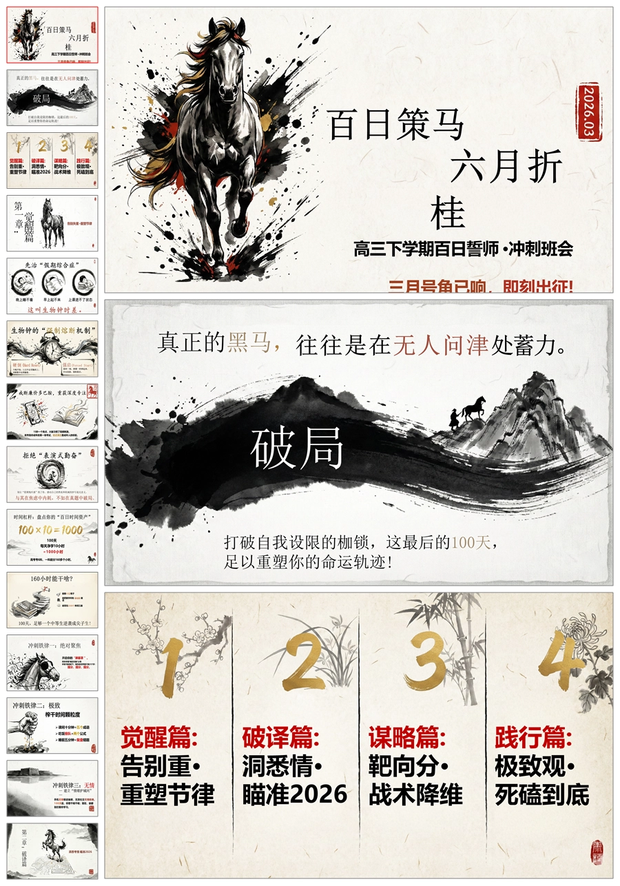 【6088】《百日策马六月折桂》高三百日冲刺班会PPT课件+教案+发言稿