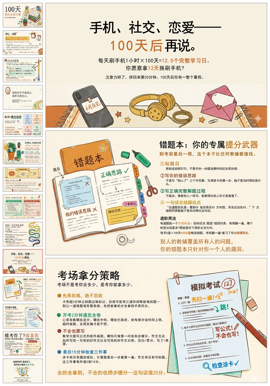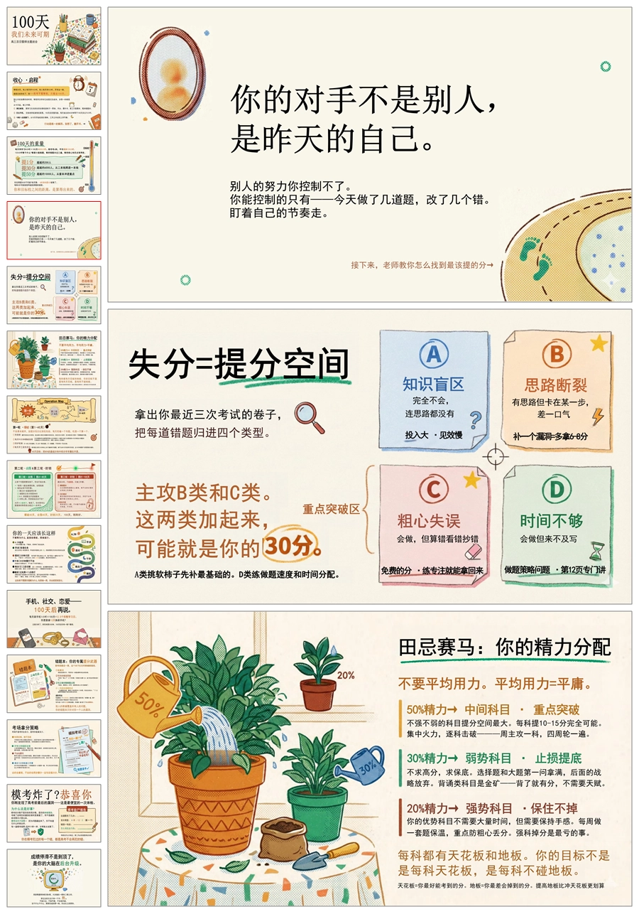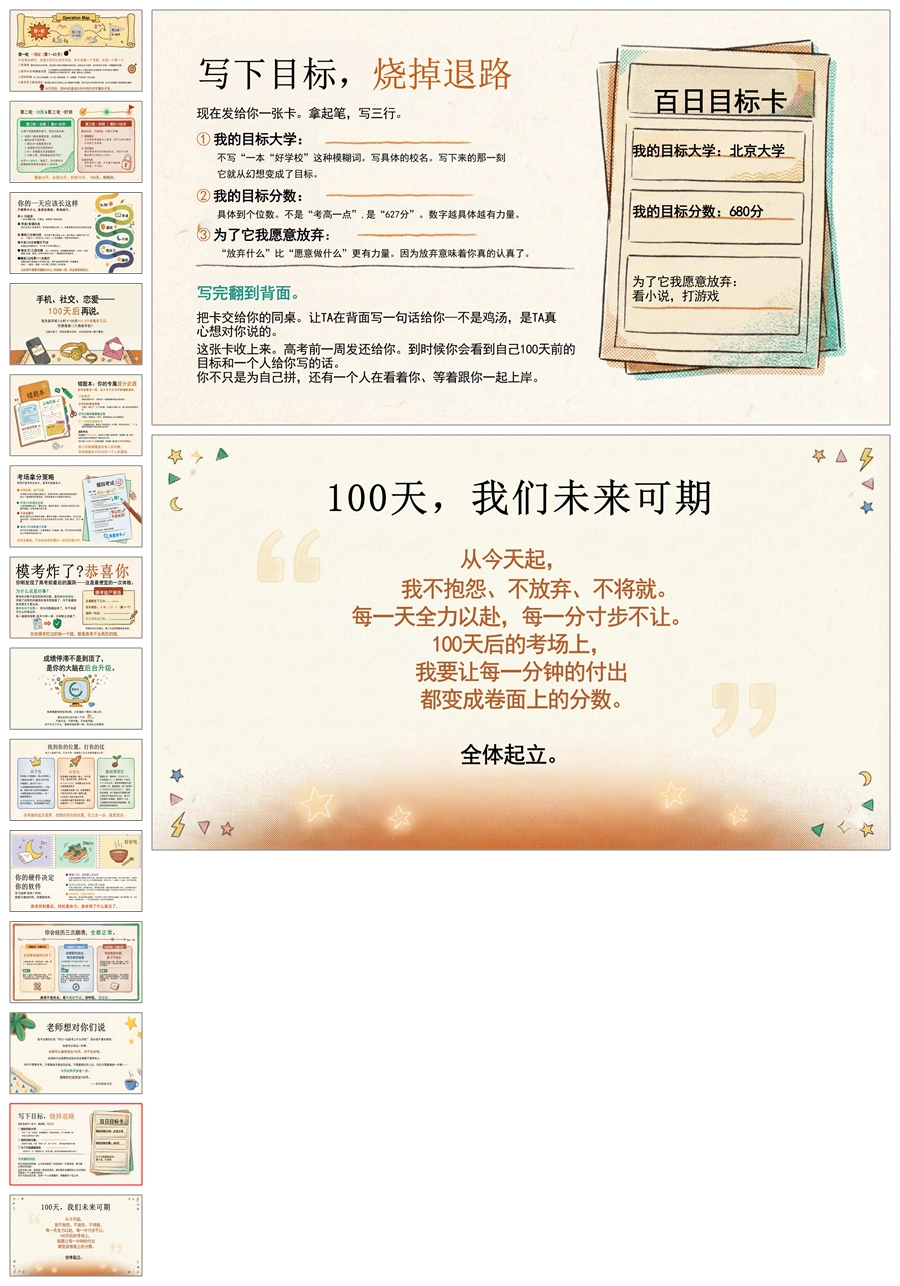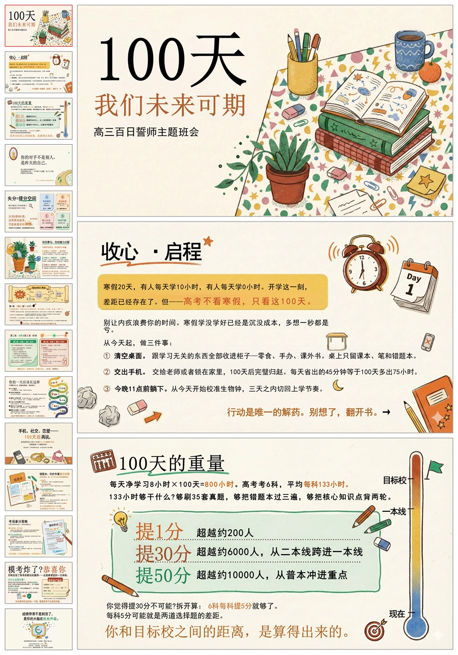 【6089】《100天,我们未来可期》高考百日誓师主题班会PPT课件+发言稿