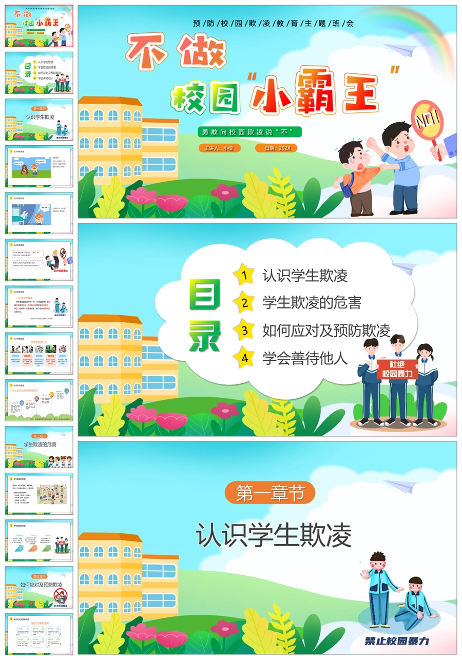 【6093】《不做校园小霸王》小学生防欺凌主题班会PPT课件+教案+演讲稿+视频