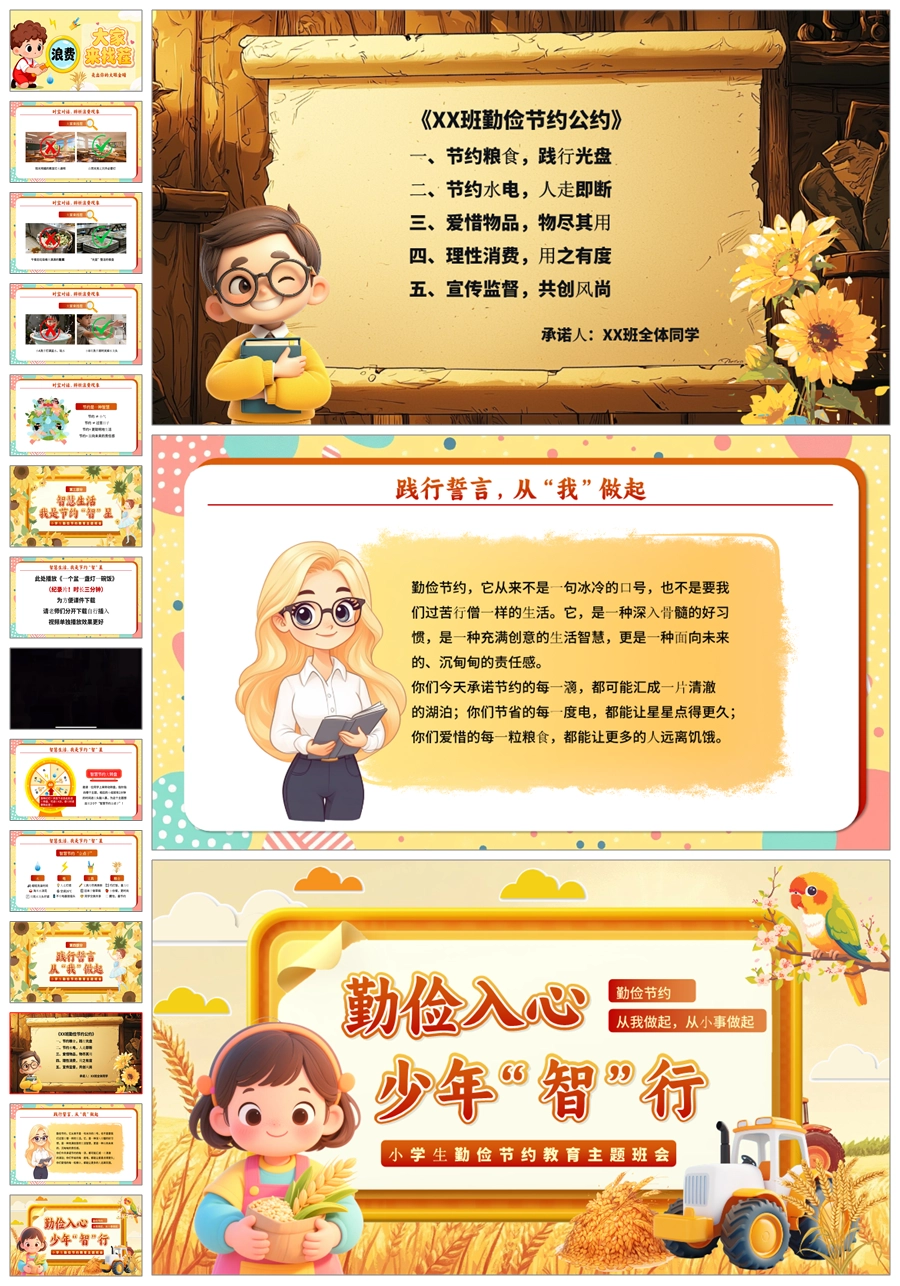 【6100】《勤俭入心,少年“智”行》勤俭节约主题班会PPT课件+教案+视频