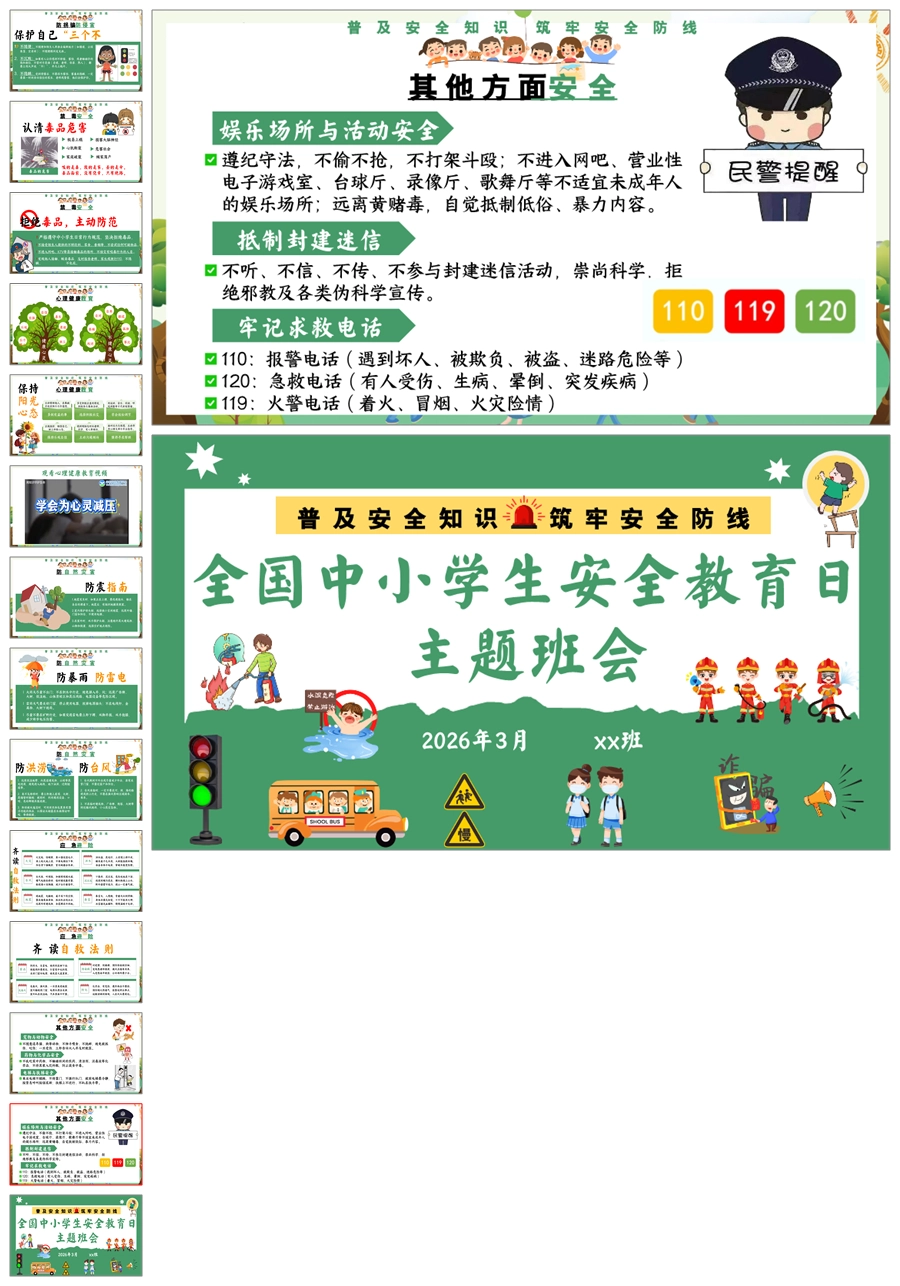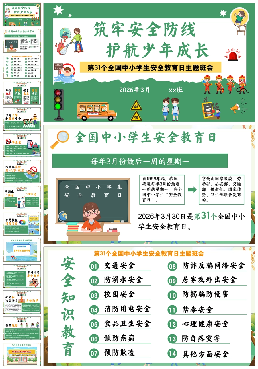 【6112】全国中小学生安全教育日主题班会PPT课件+教案+视频