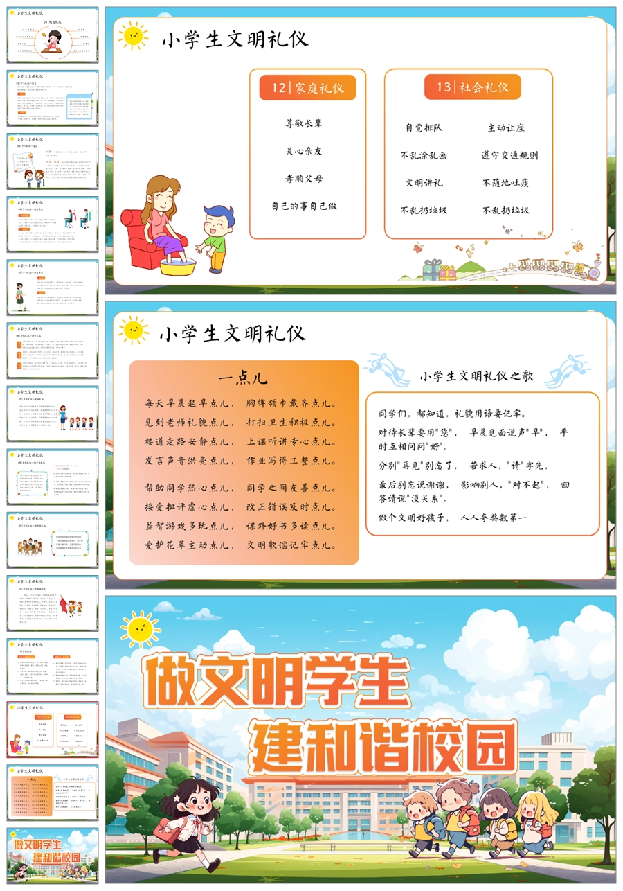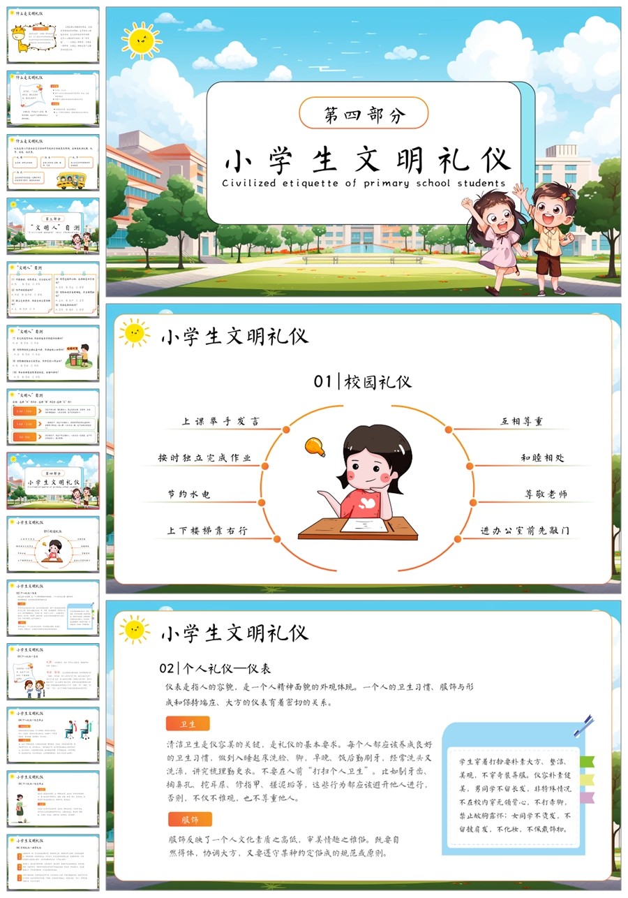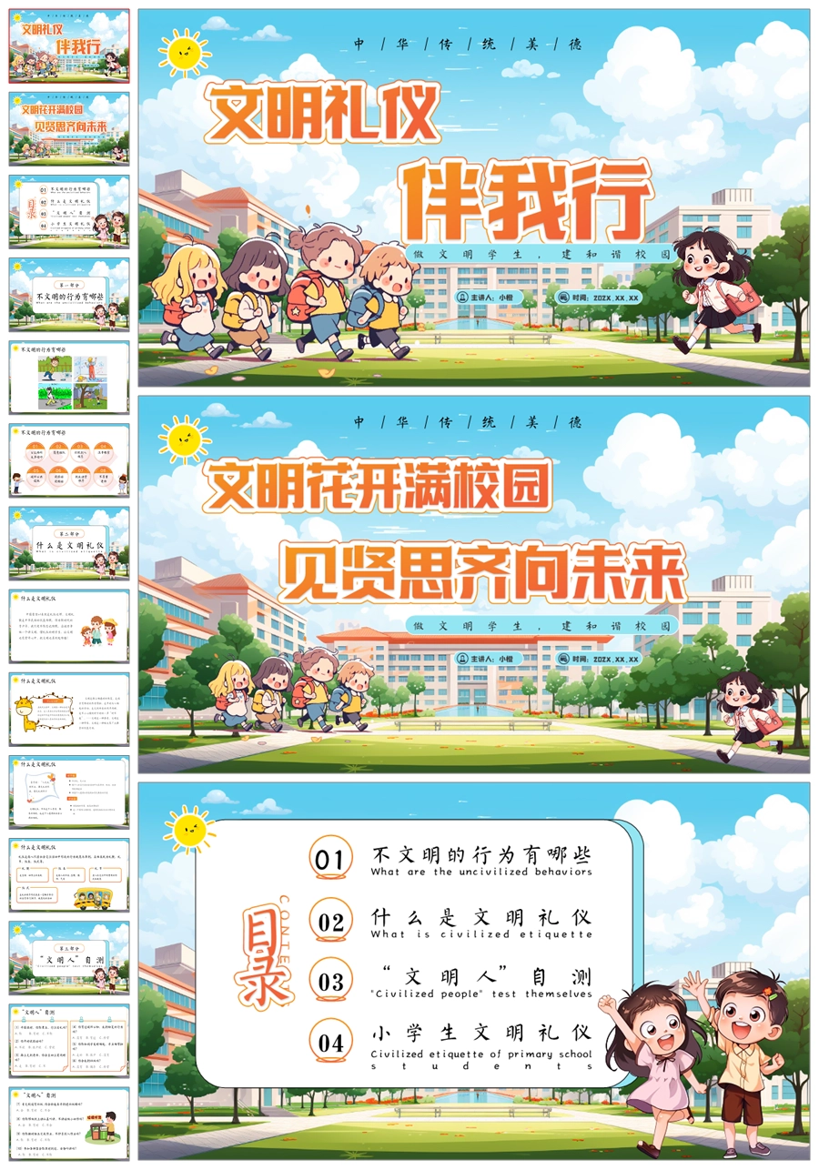 【6115】校园文明伴我行小学生文明礼仪教育主题班会PPT课件+教案+逐字稿