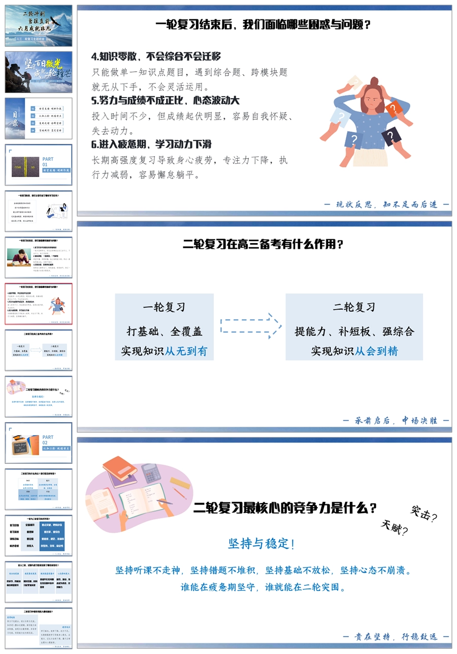 【8679】《坚守百日微光,成就二轮锋芒》高三二轮学法指导PPT课件+发言稿