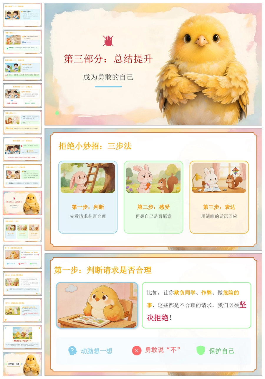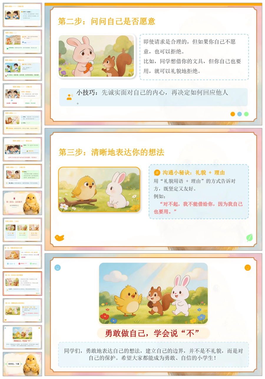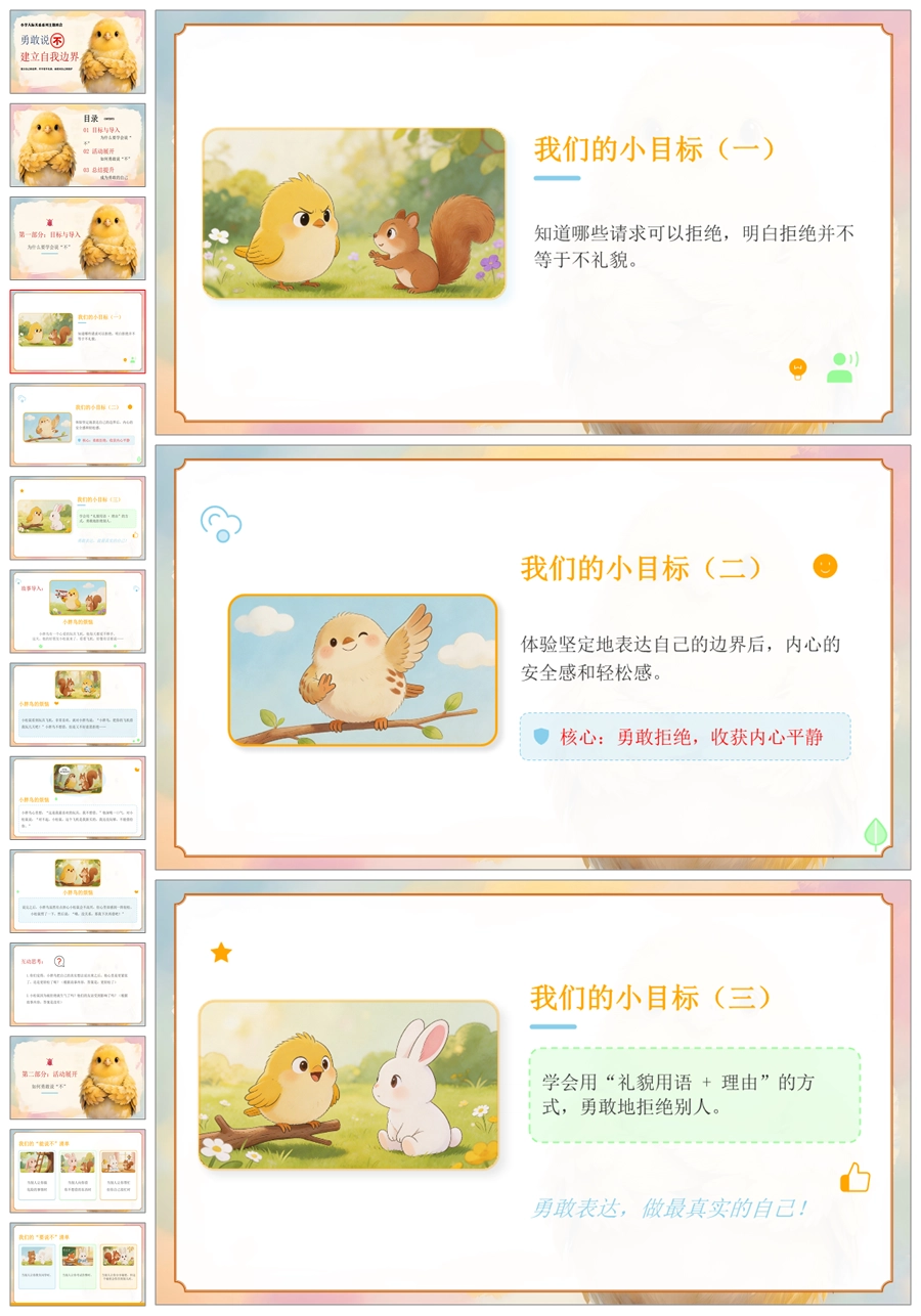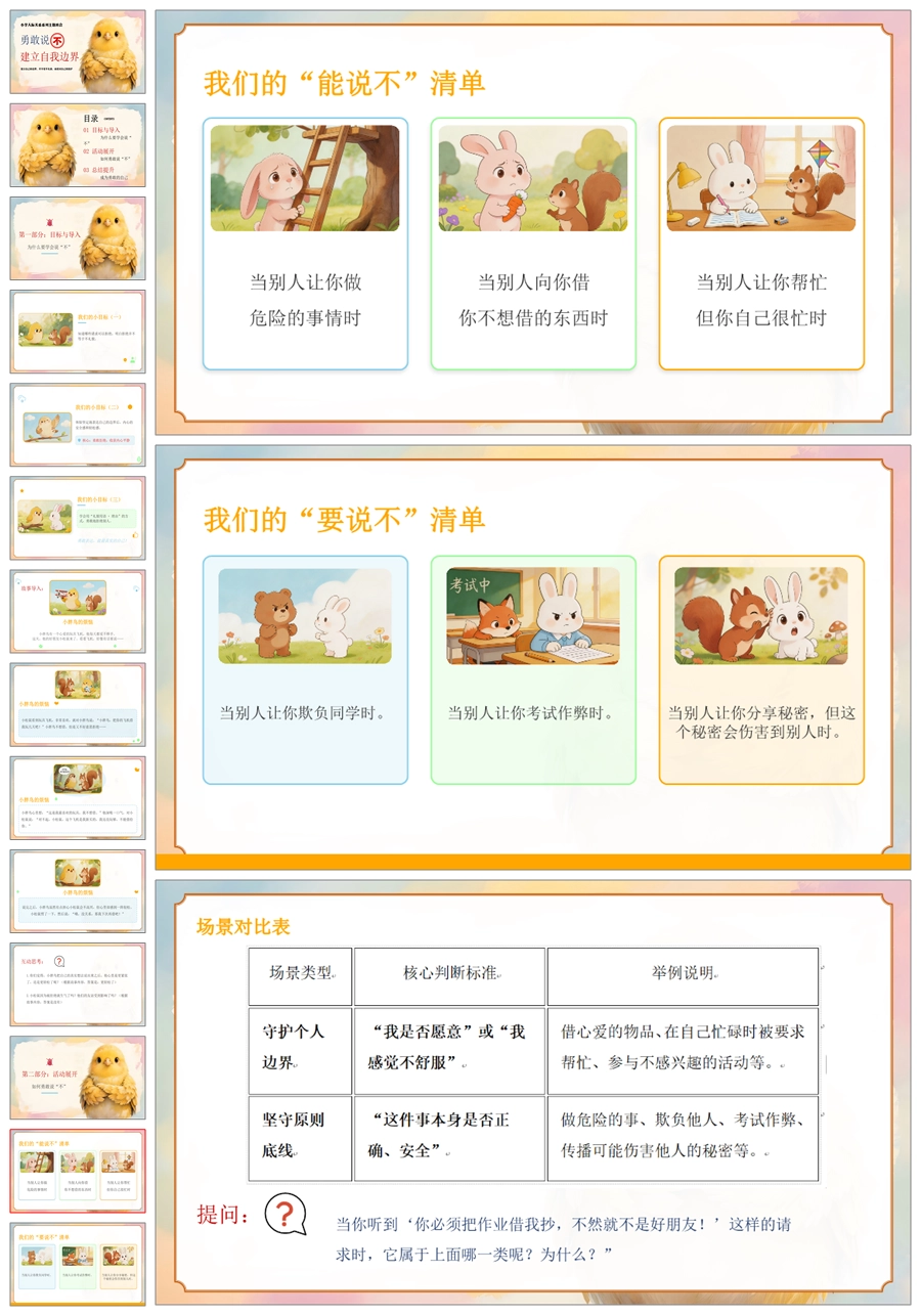 【6123】《勇敢说不,建立自我边界》小学人际交往主题班会PPT课件+教案+逐字稿