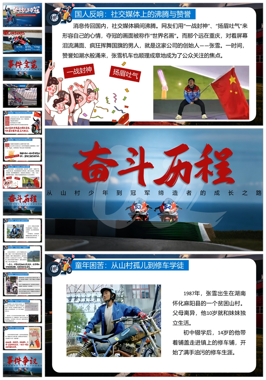【6119】《从修车铺到世界冠军》张雪机车世界夺冠的追梦启示励志主题班会PPT课件+教案+视频+逐字稿