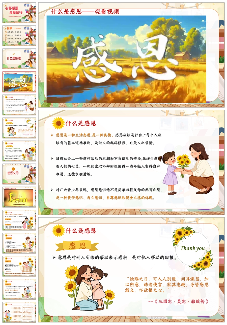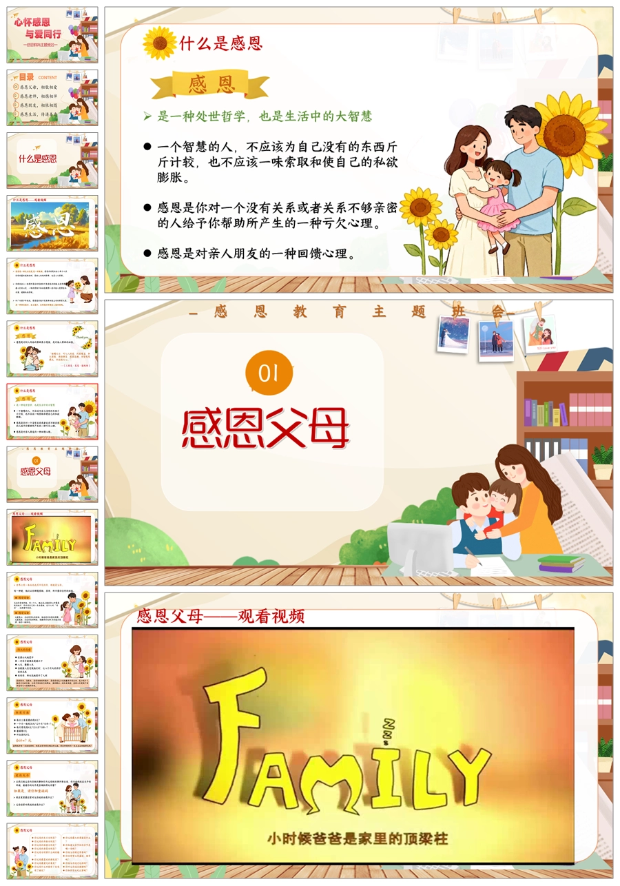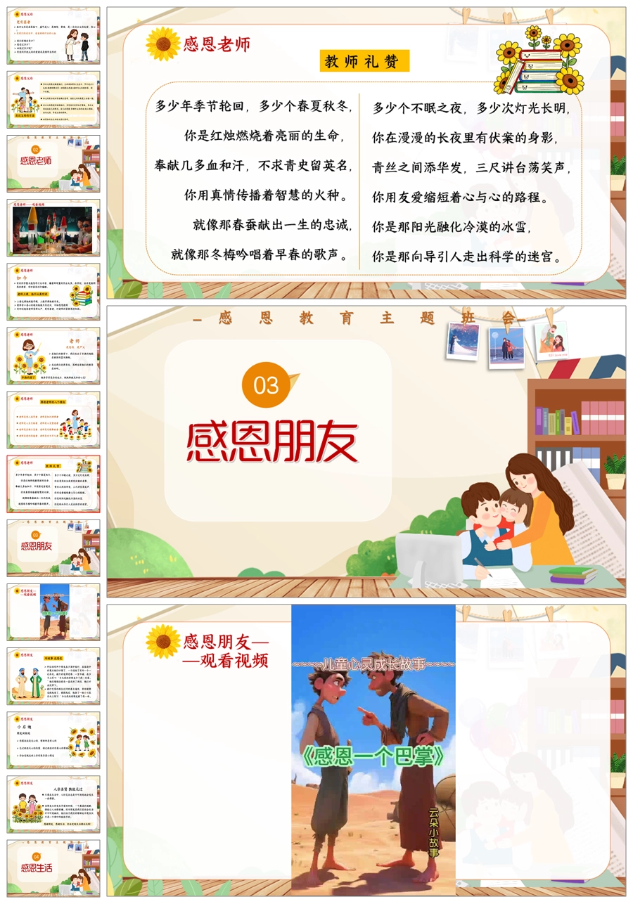 【8687】《心怀感恩与爱同行》感恩教育主题班会ppt课件视频+教案+主持稿2