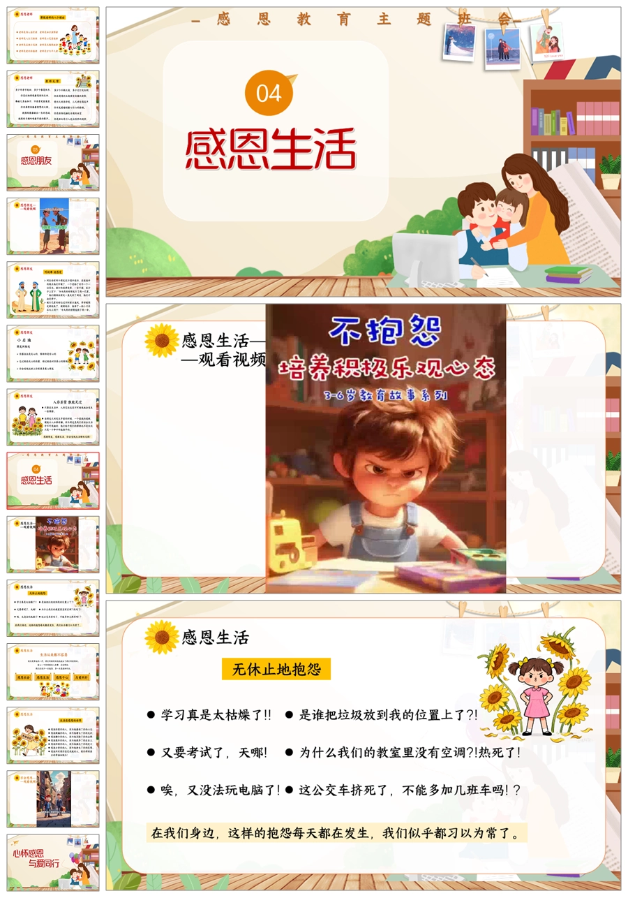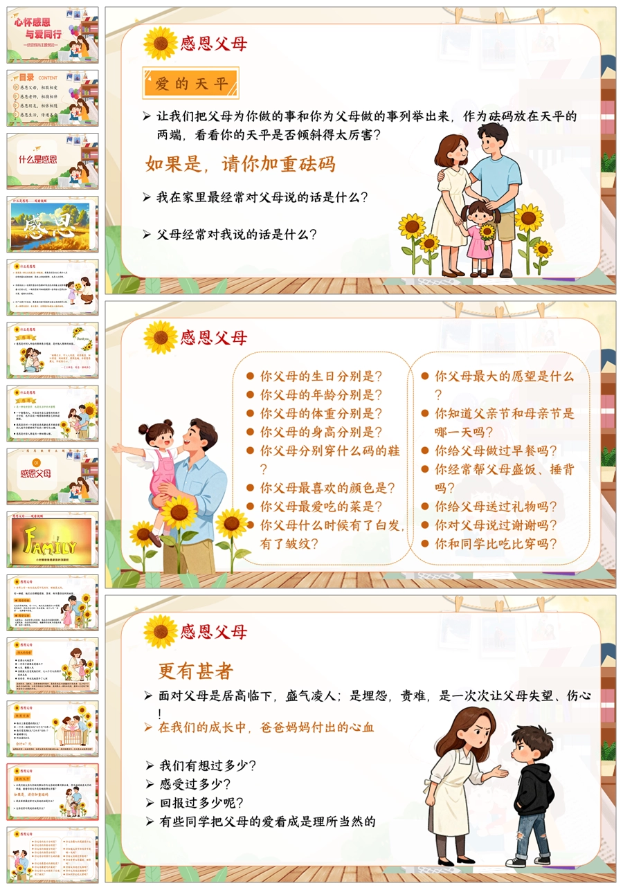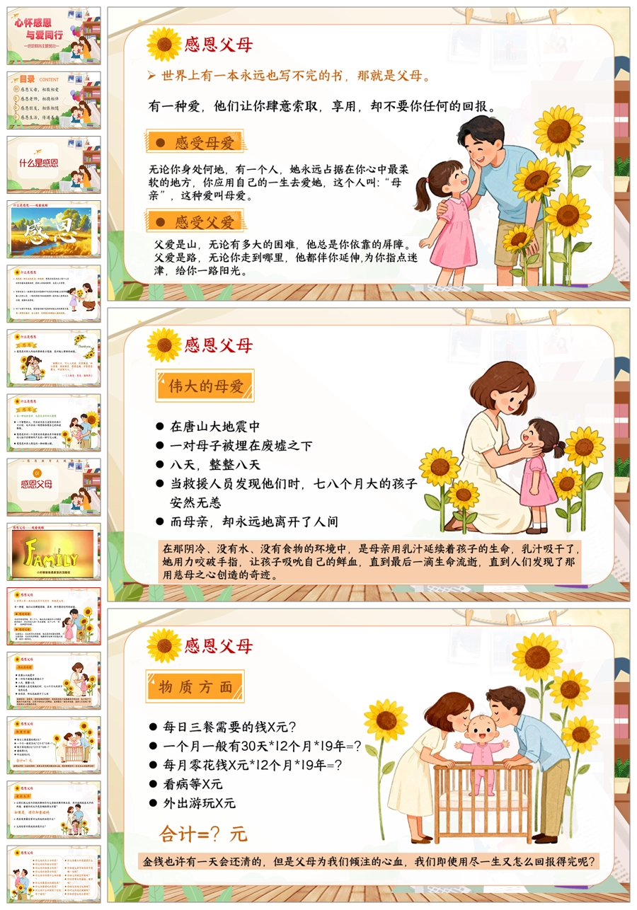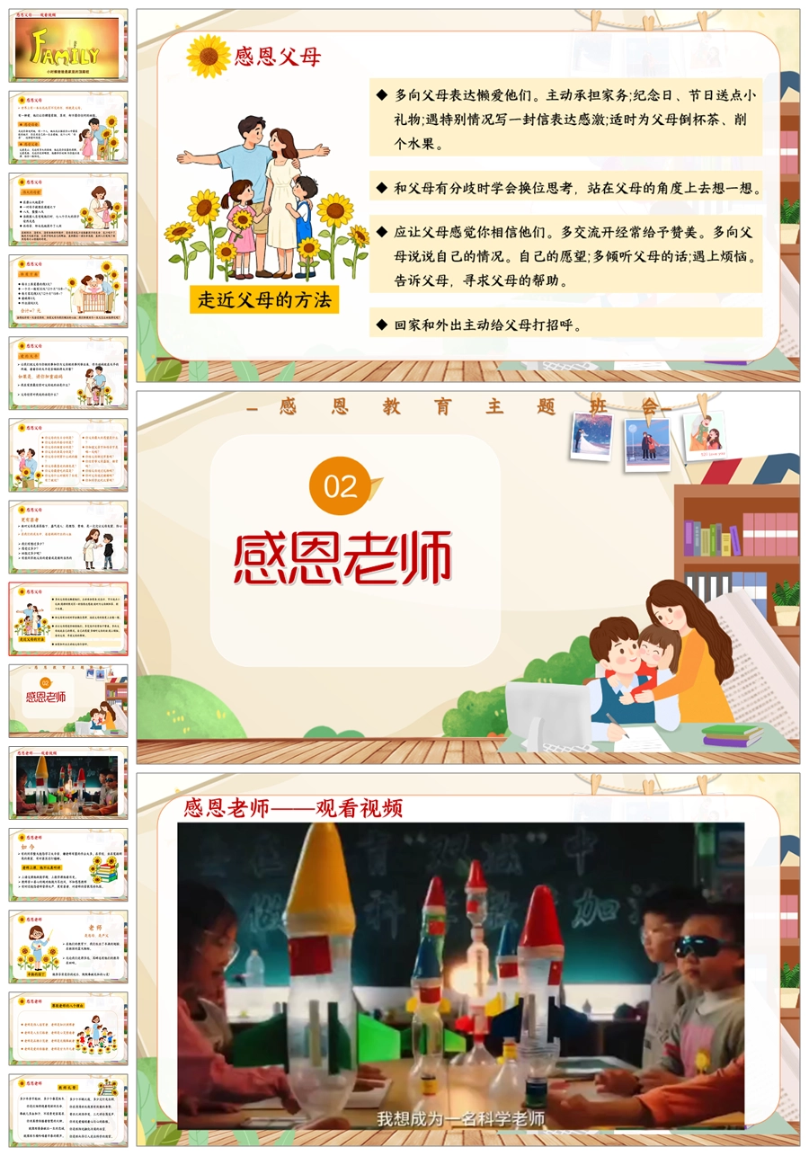 【8687】《心怀感恩与爱同行》感恩教育主题班会ppt课件视频+教案+主持稿2