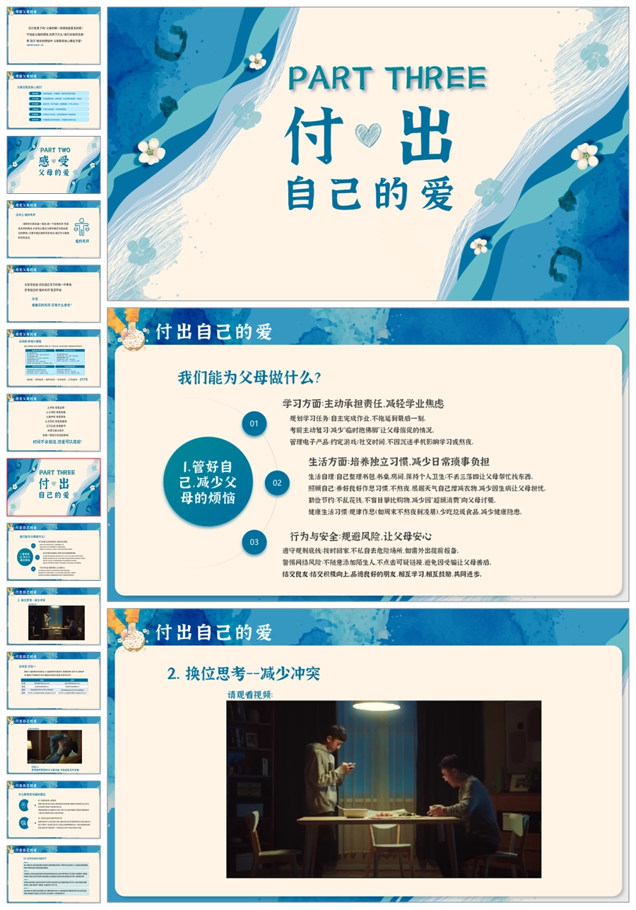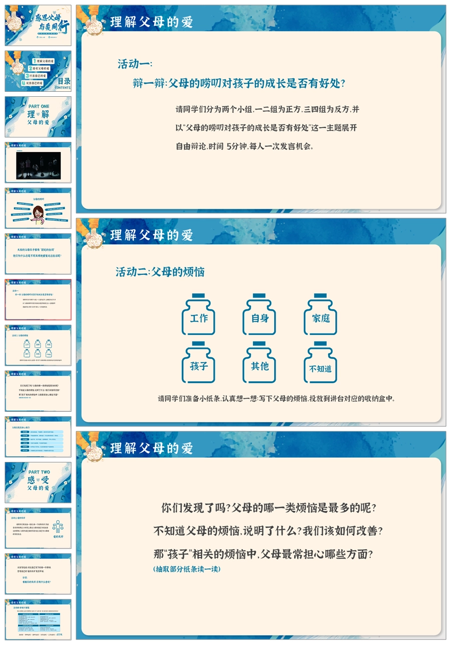 【8699】《感恩父母》小学生感恩教育主题班会PPT课件+教案+演讲稿+视频